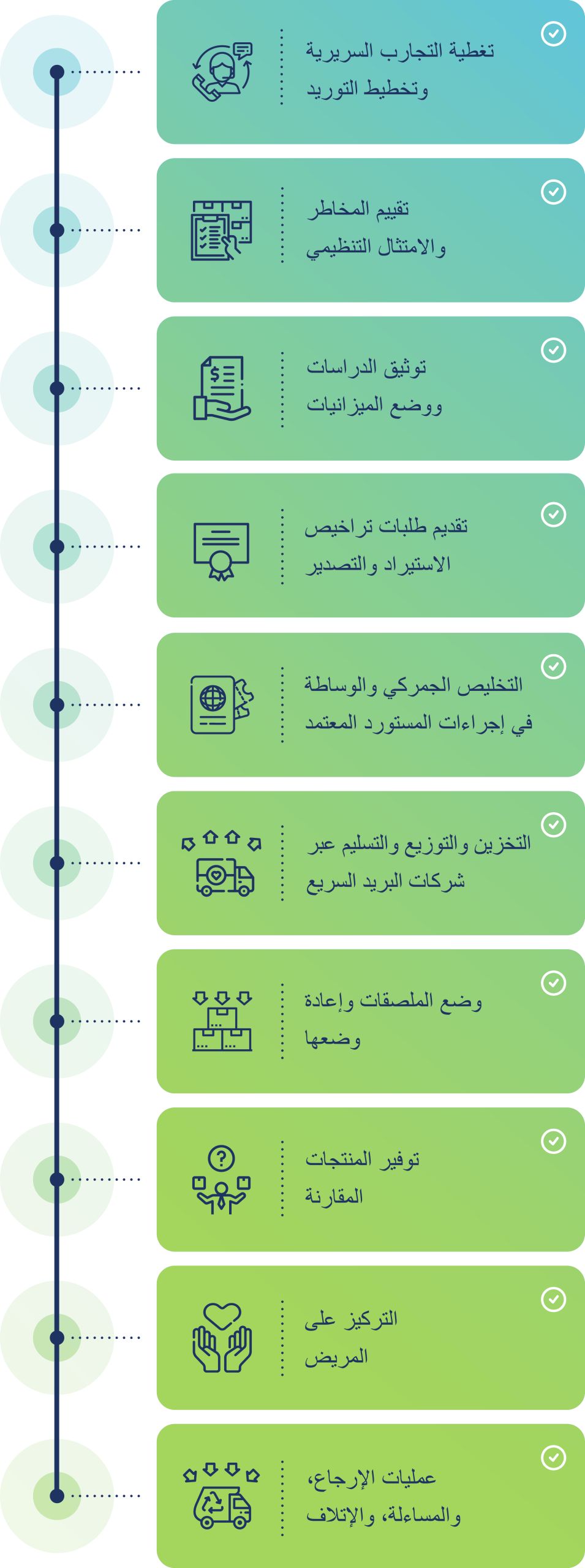 نعمل وفقًا لمتطلبات ولوجستيات وأنظمة كل سوق حول العالم.